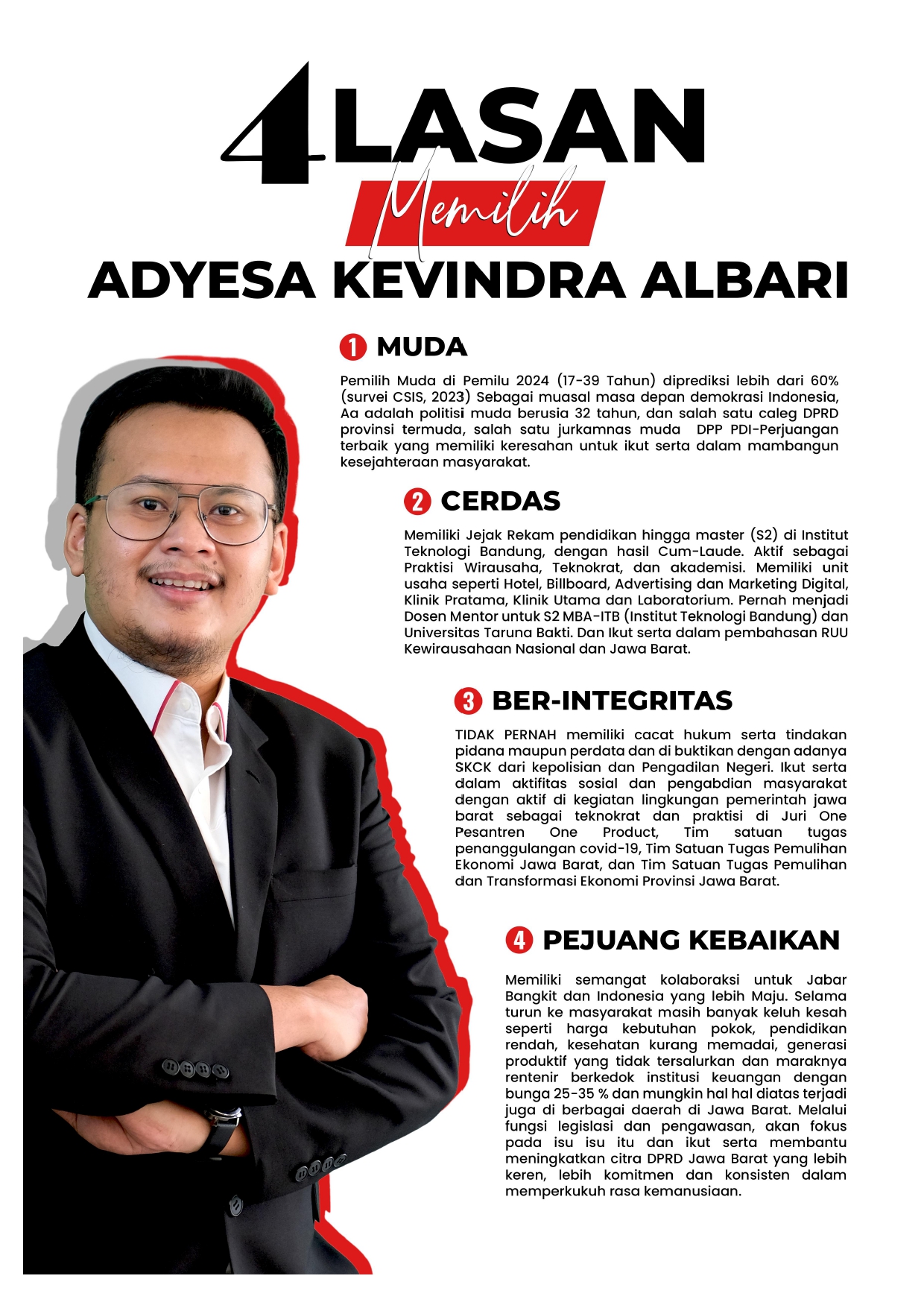 Adyesa Kevindra Albari aktif sebagai wirausaha di bidang Jasa dan Perhotelan, Kesehatan, Economic Creative, Multimedia Marketing, Business Management, Small Business Management,and Social Entreprise